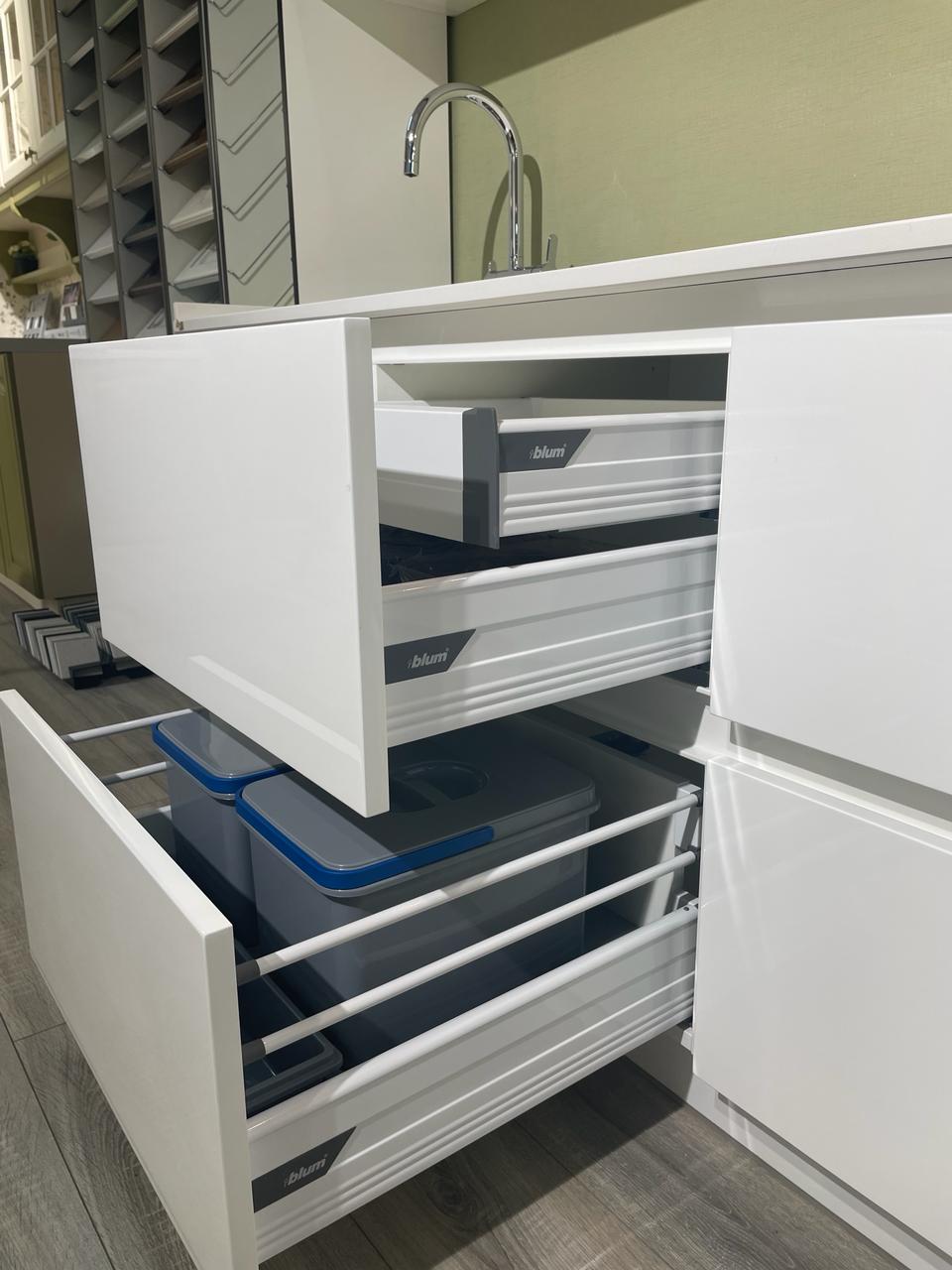 Выкатные механизмы ящиков: BLUM-3шт, метабоксы с доводчиками 4шт